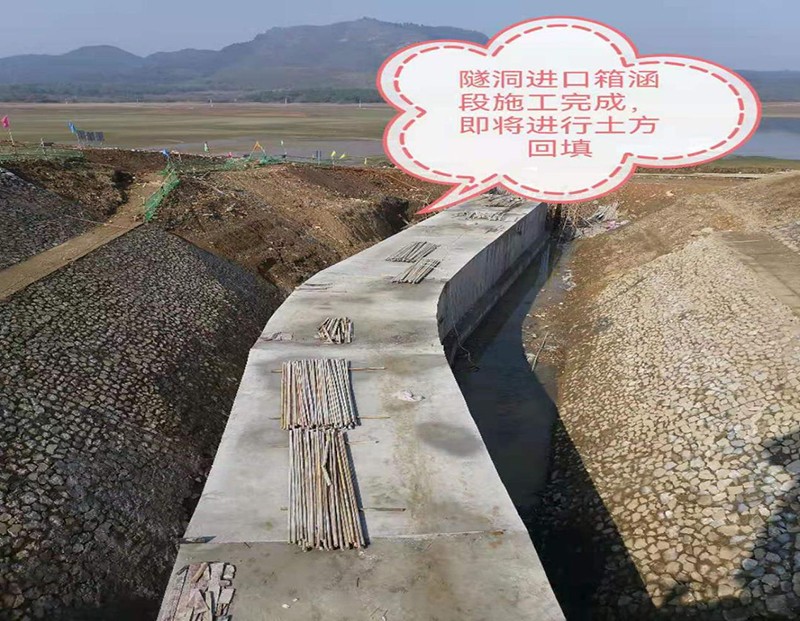 工程于2021年10月26日正式開工,目前已完成主要形象進度有:大壩壩坡修整、大壩左岸粘土鋪蓋和粘土斜墻、壩下涵管內(nèi)襯鋼管、隧洞進口箱涵段和泄洪渠1+200~1+975 m,其它項目均按照計劃工期有序推進,圓滿完成2021年度施工任務(wù),為完成2022年安全度汛打下堅實的基礎(chǔ)。