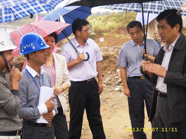 孫廳長一下車直奔工地施工現(xiàn)場,并主動與現(xiàn)場施工人員握手。當走到防洪墻施工現(xiàn)場時,孫廳長停住腳步,聽取完施工情況匯報后,他對駐守在施工現(xiàn)場的參建各單位及個人表示問候,祝大家國慶節(jié)日快樂,他要求各單位再接再厲,按省五河辦的相關(guān)部署確保按期完工。最后,孫廳長要求各單位把好質(zhì)量和安全關(guān),確保工程完工不出任何事故。