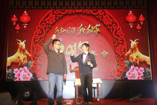 年會(huì)在喜慶的氛圍下拉開序幕,公司董事長(zhǎng)王元旦發(fā)表了熱情洋溢的新年賀詞,并代表公司董事會(huì)向全體員工及家屬,向關(guān)心公司發(fā)展的社會(huì)各界朋友致以新春的祝福。回顧2014年,王董事長(zhǎng)指出,在公司董事會(huì)的正確領(lǐng)導(dǎo)下,全體員工上下團(tuán)結(jié)一心,攻堅(jiān)克難,發(fā)奮有為,頑強(qiáng)拼搏,扎實(shí)工作,各項(xiàng)工作取得了令人鼓舞的成績(jī),公司朝著質(zhì)量好、品牌優(yōu)、信譽(yù)高、市場(chǎng)廣的集團(tuán)型企業(yè)方向邁進(jìn)。展望2015年,王董事長(zhǎng)表示,公司將繼續(xù)圍繞“一個(gè)系統(tǒng),五大平臺(tái)”建設(shè)為工作重心,不斷改革創(chuàng)新,開拓進(jìn)取,以更加強(qiáng)烈的責(zé)任擔(dān)當(dāng)、更加務(wù)實(shí)的工作作風(fēng)、更加飽滿的工作熱情,團(tuán)結(jié)一心,同心同德,在實(shí)現(xiàn)公司夢(mèng)的征程上闊步前行!王董事長(zhǎng)熱情洋溢的講話,獲得了現(xiàn)場(chǎng)的陣陣掌聲。