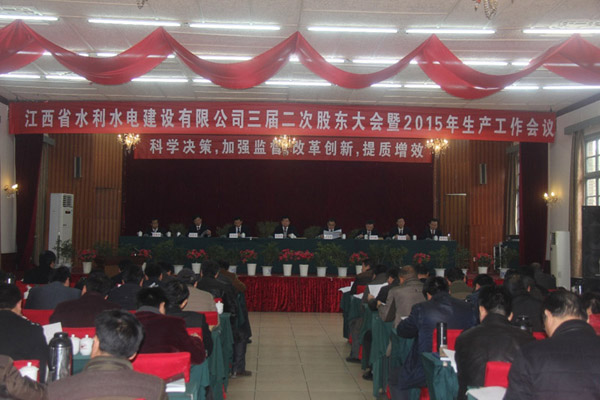 春回大地,萬象更新,正值全國兩會召開之際,江西省水利水電建設(shè)有限公司第三屆二次股東大會暨2015年生產(chǎn)工作會議,于3月10日在南昌隆重召開。公司董事、監(jiān)事、股東、中高層管理人員及員工代表共86名代表會聚一堂,共商公司改革發(fā)展大計(jì),描繪企業(yè)美好藍(lán)圖。