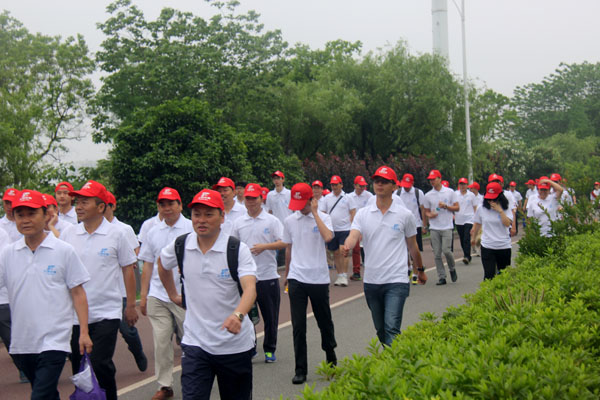 活動開始前,公司工會主席史偉作了簡短的動員講話,上午8:30健步走活動正式啟動。在工作人員的引導下,員工們邁著矯健的步伐大踏步的行走在美麗的艾溪湖湖畔?;顒又校蠹揖穸稊\、意氣風發(fā),你追我趕、揮汗如雨,最后全部順利抵達終點,全程共計11公里。