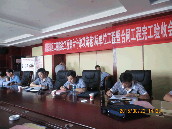 2015年8月23日,江西省鄱陽湖區(qū)二期防洪工程第六個單項工程建設(shè)項目部在南昌縣主持召開了江西省鄱陽湖區(qū)二期防洪工程第六個單項蔣巷聯(lián)圩除險加固工程蔣巷1標單位工程暨合同工程完工驗收會議。驗收工作組由江西省鄱陽湖區(qū)二期防洪工程第六個單項建設(shè)項目部、南昌縣堤防修建項目部、江西省水利規(guī)劃設(shè)計院、江西省水利工程監(jiān)理有限公司、江西省水利水電建設(shè)有限公司和蔣巷聯(lián)圩河道堤防管理站的代表組成,江西省水利工程質(zhì)量安全監(jiān)督局派員列席了會議。公司總工程師胡鴻煌、技術(shù)質(zhì)安部經(jīng)理郭洪有參加了驗收會。