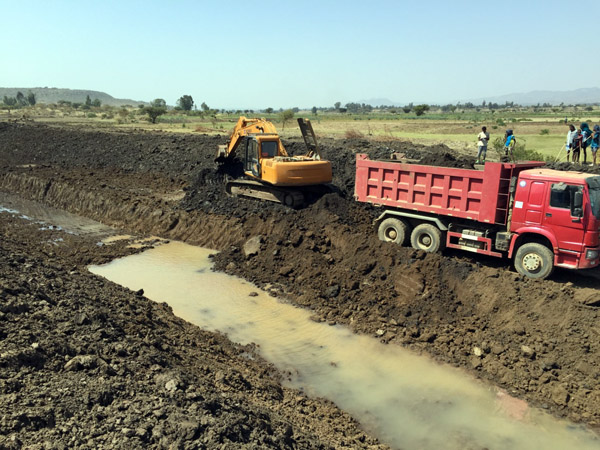 部長Motuma Mekesa一行于上午抵達(dá)項(xiàng)目施工現(xiàn)場,隨后對項(xiàng)目渠首及總渠段進(jìn)行參觀考察。埃塞公司副總經(jīng)理兼項(xiàng)目經(jīng)理黃生寶向部長介紹了建設(shè)項(xiàng)目概況及項(xiàng)目施工進(jìn)度,就項(xiàng)目設(shè)計(jì)、征地等提出了建設(shè)性意見和建議,表達(dá)了以“服務(wù)社會”為宗旨,與各方一道以最快的速度推進(jìn)項(xiàng)目建設(shè)的積極態(tài)度。項(xiàng)目經(jīng)理黃生寶表示,我們將秉承我公司“健行天下,堰筑大同”的精神,以最好的質(zhì)量,最快的速度保證項(xiàng)目的實(shí)施。部長先生對我們的現(xiàn)場建設(shè)以及積極的態(tài)度表示了肯定,要求設(shè)計(jì)、征地以及業(yè)主單位積極與施工單位合作,保證項(xiàng)目施工質(zhì)量,加快項(xiàng)目施工速度。同時(shí),相信我公司能堅(jiān)定信心,積極應(yīng)對困難與挑戰(zhàn),在有限的時(shí)間內(nèi)圓滿完成任務(wù)。
