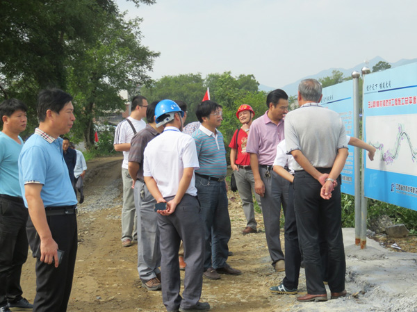 為進一步落實8月8日全省水利建設(shè)推進會精神,2014年9月21日上午,以水利廳副廳長廖瑞釗為組長的督查組來到我公司承建的上饒市玉山縣樟村鎮(zhèn)防洪工程現(xiàn)場檢查指導(dǎo)工作。督查組一行深入工地全線施工現(xiàn)場,每到一處都詳細詢問各參建單位情況,了解工程的投資規(guī)模、設(shè)計方案及進度、質(zhì)量控制情況。督察組對樟村鎮(zhèn)防洪工程施工質(zhì)量尤其是工程外觀表示非常滿意。在看了工地整齊規(guī)范的五圖一牌及公司形象宣傳欄后,廖瑞釗副廳長對我公司的標準化施工管理給予了高度評價,還不時拍照記錄,并要求玉山縣水利局在全縣其他水利建設(shè)工地參照學習并加以推廣。在檢查完工地現(xiàn)場后,督察組在樟村鎮(zhèn)政府就防洪工程設(shè)計、施工、及鄉(xiāng)鎮(zhèn)規(guī)劃召開了座談會。