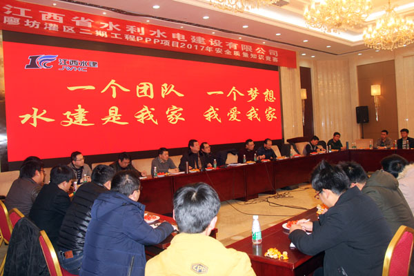 下午,董事長王元旦一行應(yīng)邀出席了廖坊灌區(qū)二期工程PPP項目安全質(zhì)量知識競賽活動,并為獲獎代表隊頒獎。隨后召開了項目部全體員工座談會,副總經(jīng)理王俊華主持會議。會上董事長王元旦一行對項目部舉辦的安全質(zhì)量知識競賽給予了高度評價,對員工提出的各類問題逐一作了解答,員工們收獲良多。