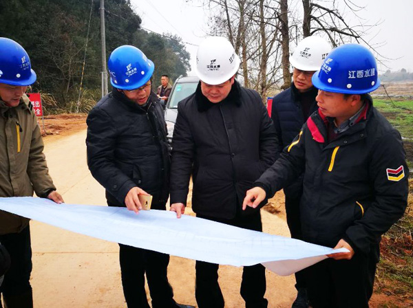 1月31日,董事長王元旦率總經(jīng)理徐洪良、書記王延軍、工會主席史偉、董事會秘書劉俊視察廖坊灌區(qū)二期工程PPP項目。
