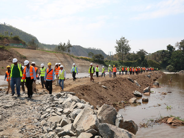 6月6日,世行官員、業(yè)主委員會(huì)、爭(zhēng)端解決委員會(huì)、監(jiān)理等項(xiàng)目相關(guān)方一行50余人來到項(xiàng)目現(xiàn)場(chǎng),對(duì)項(xiàng)目進(jìn)度及ESHS方面進(jìn)行現(xiàn)場(chǎng)檢查。檢查團(tuán)先后來到大壩圍堰區(qū)、取水口、廠房、支洞、廠房住宅區(qū)和項(xiàng)目營(yíng)地進(jìn)行檢查。世行對(duì)項(xiàng)目總體進(jìn)度表示滿意,同時(shí),希望承包商繼續(xù)加快進(jìn)度,特別針對(duì)關(guān)鍵節(jié)點(diǎn)進(jìn)行資源合理配置,爭(zhēng)取項(xiàng)目早日建成發(fā)電。