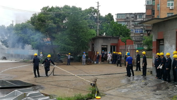此次演練活動,得到了公司各級領導的高度重視,相關領導親臨現場進行了指導,機安公司廠區(qū)內全體員工參加演練。此次演練內容:1、火情報警;2、人員疏散;3、搶救物資;4、滅火器使用方法;5、連接室外消防給水滅火等。