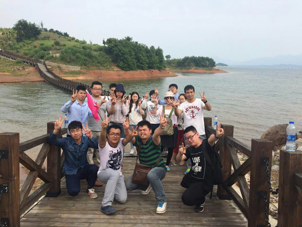 5月17日,大家在南昌統(tǒng)一集合,乘車出發(fā)前往廬山西海景區(qū),一路歡聲笑語,抵達景區(qū)后,全體人員立刻進入整隊分組環(huán)節(jié),推薦隊長、政委和旗手,選好隊歌,設計隊名、口號和LOGO。很快“王者隊”、“疾風隊” 等名字紛紛閃亮登場?!敖魉ǎ跽邭w來”、“斧頭斧頭,兇如猛虎”等口號一次又一次迎來全場的陣陣歡呼。隨后進行了“一圈到底、鼓舞飛揚、能量傳遞、激情節(jié)拍、勇攀高峰、定向?qū)殹?個比賽項目,大家一個個摩拳擦掌,爭當?shù)谝幻?,現(xiàn)場一派朝氣蓬勃、青春洋溢的氛圍。
