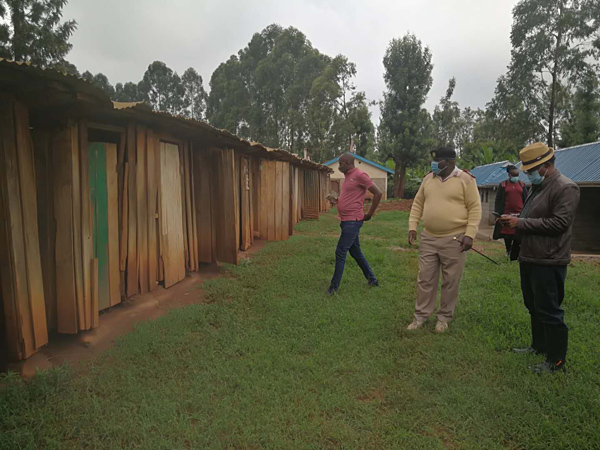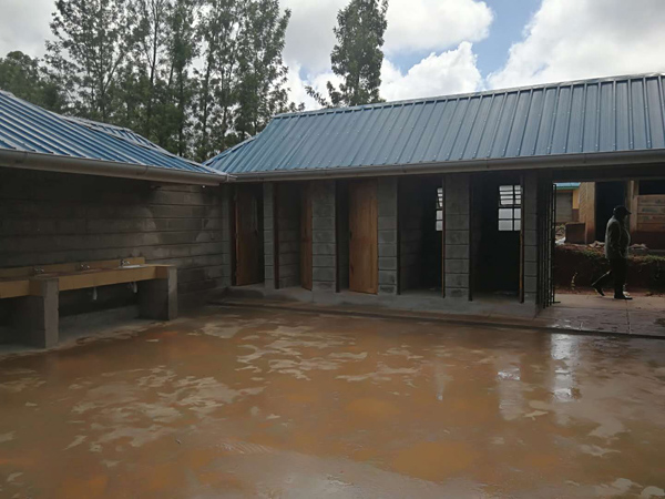 2020年初,肯尼亞公司總經(jīng)理賀翔及286公路項目經(jīng)理廖會文,在陪同肯尼亞議會常務(wù)秘書Matinga及交通部領(lǐng)導(dǎo)巡視286公路項目時發(fā)現(xiàn)當(dāng)?shù)豊garu小學(xué)公共衛(wèi)生設(shè)施極其簡陋,嚴(yán)重危害全校師生在疫情期的身體健康??夏醽喒景l(fā)揚“江西水建”貫有的“捐贈公益,造福社會”的優(yōu)良傳統(tǒng),為小學(xué)捐建公共衛(wèi)生設(shè)施。施工期間恰逢雨季,疫情肆虐,人員物資極度匱乏,肯公司加大施工力度,克服重重困難,圓滿完成施工。