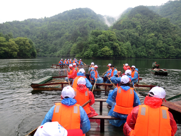 5月4日上午,大家在南昌統(tǒng)一集合,乘車出發(fā)前往龍源峽風(fēng)景區(qū)。天空下起了淅淅瀝瀝的小雨,到達(dá)景區(qū)后,雨勢加大,但并沒有阻擋住江西水建青年員工的熱情,大家經(jīng)破冰和分組環(huán)節(jié)后, 60多人分為八組,進(jìn)入高峽明珠雙燕海劃木板船,在湖心展開了一場別開生面的劃船比賽,激蕩的水花在濛濛細(xì)雨中此起彼伏,頗有“百舸爭流”的壯麗場面。隨后,大家興致勃勃地游覽了三星嶺、千福灘、萬壽山和水中大森林等景點(diǎn)。