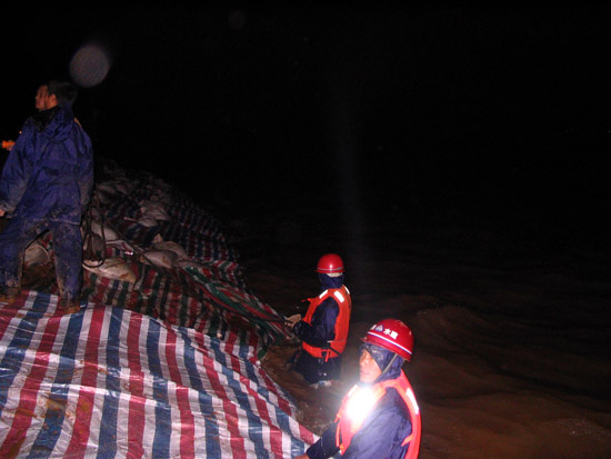 根據(jù)以往的施工經(jīng)驗(yàn),我們很快啟動(dòng)了搶險(xiǎn)應(yīng)急預(yù)案。但由于環(huán)境惡劣,考驗(yàn)我們的時(shí)候到了,要發(fā)揚(yáng)我們江西水建人“特別能吃苦、特別能戰(zhàn)斗、特別能忍耐、特別能協(xié)作精神”的時(shí)候到了,我們與洪水搶時(shí)間、爭(zhēng)進(jìn)度,全體干群在漆黑的大堤上是一片穿梭奔跑的身影,大家齊心協(xié)力,手提肩扛,把一百多斤一塊的混凝土預(yù)制塊,一塊塊運(yùn)到堤腳,此時(shí)項(xiàng)目部總工曾俊平不顧江水的寒冷,帶領(lǐng)其它幾名員工,奮身躍入水中,在水下鋪設(shè)彩條布,而此時(shí)水下溫度只有10℃左右,渾濁江水一浪高過一浪拍打在他們的身上。大家顧不上寒冷,顧不上疲勞,顧不上饑餓,衣服濕了又干,干了又濕,分不清是哪次被汗水還是雨水弄濕的,在微弱的手電光照亮下鋪設(shè)了一條又一條彩布條,碼起了一道又一道沙包小堤。經(jīng)過大家的緊張奮戰(zhàn),終于幾處險(xiǎn)情得到了控制,等到我們?cè)诿β抵谢剡^神來時(shí),已經(jīng)是次日的凌晨三點(diǎn)多鐘,盡管大家拖著一副疲憊不堪的泥身子,但大家臉上裝滿了滿意和勝利的微笑,王總此時(shí)飽含真情地對(duì)大家說了一聲:“大家真的辛苦了,謝謝大家!”走在回家的路上,我正好與項(xiàng)目總工曾俊平走在一起,我看到他渾身濕漉漉的,我關(guān)心的問他在水中冷嗎?他笑笑說道:“這是關(guān)鍵時(shí)刻,再冷也要下”。他旁邊的同事告訴我,他是從下午三點(diǎn)鐘就一直在水里做事直到剛才,整整在水中浸泡了十二個(gè)小時(shí)。我們參加搶險(xiǎn)的同志被曾俊平這種不怕困難、不畏艱險(xiǎn)、不顧個(gè)人安危、敢于吃苦的精神深深感動(dòng)著,真是我們學(xué)習(xí)的好榜樣!