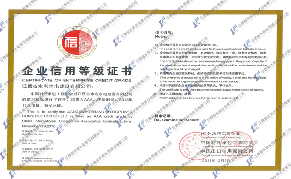 此次公司再度榮獲“2018年度AAA級信用企業(yè)”稱號,源于數(shù)百名江西水建海外人的共同努力,他對于公司進(jìn)一步提升品牌影響力,拓展國際市場具有十分重要的意義。