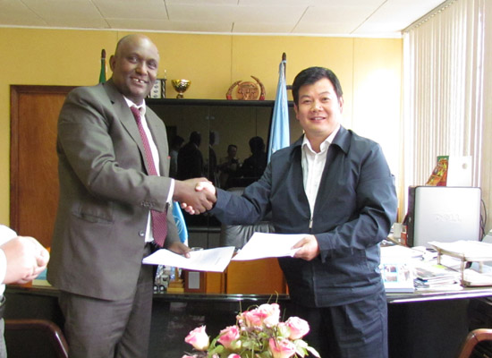 董事長總經(jīng)理王元旦與埃塞尤卡公司總經(jīng)理abebe簽訂技術合作協(xié)議