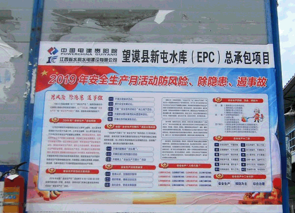 集團(tuán)資訊為積極響應(yīng)全國(guó)第18個(gè)“安全生產(chǎn)月”主題活動(dòng),我司望謨縣新屯水庫(kù)(EPC)總承包項(xiàng)目積極開(kāi)展2019年“安全生產(chǎn)月”安全質(zhì)量和安全生產(chǎn)倡議活動(dòng)。