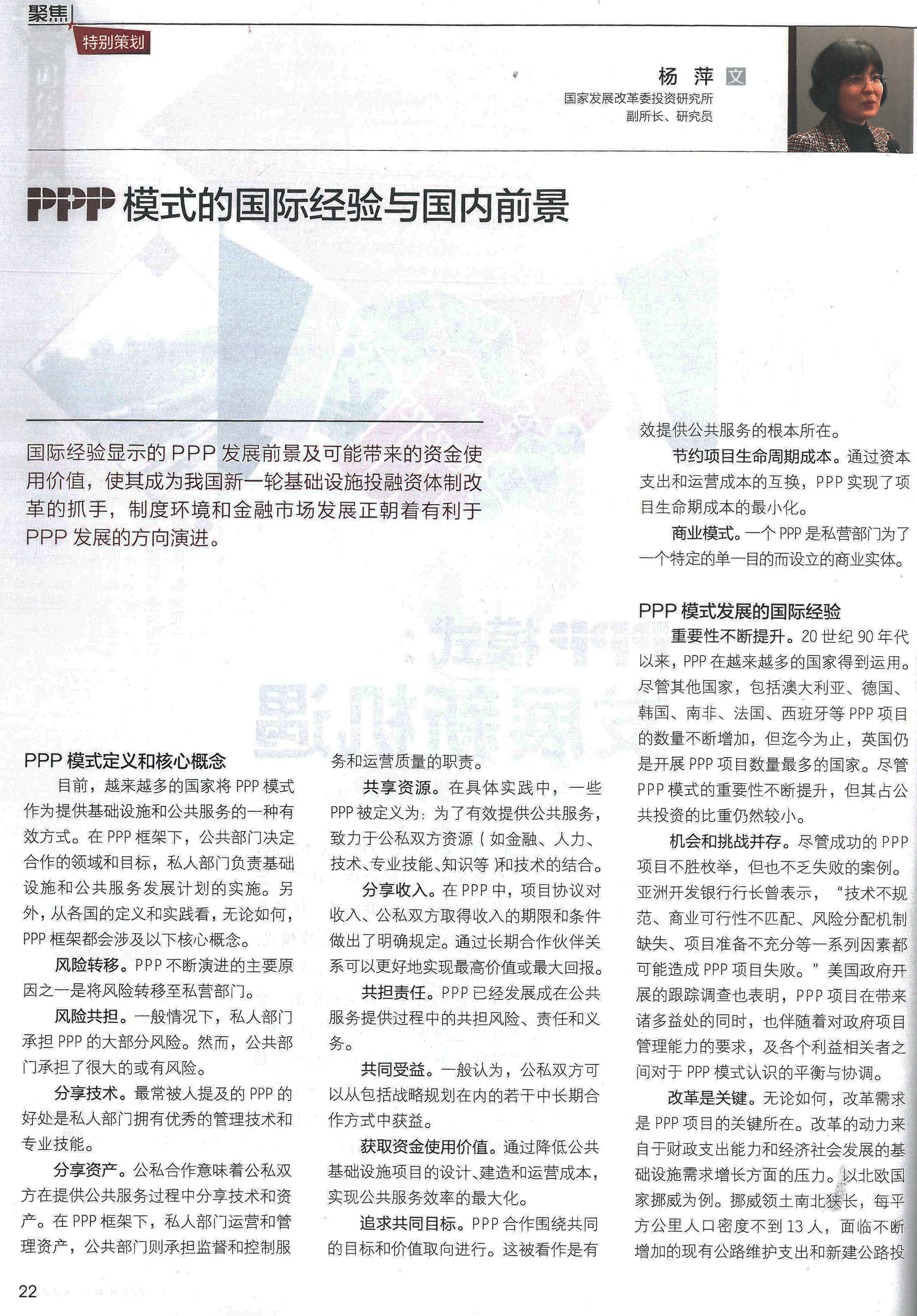 國際經(jīng)驗(yàn)顯示的PPP發(fā)展前景及可能帶來的資金使用價(jià)值,使其成為我國新一輪基礎(chǔ)設(shè)施投融資體制改革的抓手,制度環(huán)境和金融市場發(fā)展正朝著有利于PPP發(fā)展的方向演進(jìn)。