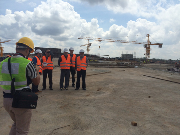 “雙河”項目是一個集零售商場、現(xiàn)代辦公樓、公共娛樂以及配套設(shè)施的綜合性工程,作為東非最大的在建城市綜合體,總建筑面積為18.2萬平方米,單層面積就超過四萬多平米。雖然出國前我對“雙河”項目就有一定的了解,但親臨現(xiàn)場,感受工地的壯觀,內(nèi)心仍然受到巨大的震撼。這個項目涉及到的工程類別較多,施工統(tǒng)籌及安全質(zhì)量監(jiān)控難度較大。在施工現(xiàn)場,我們看到各作業(yè)工種工作安排得井井有條,各類安全標(biāo)識及安全設(shè)施科學(xué)規(guī)范,雖然現(xiàn)場施工作業(yè)人數(shù)超過1000多人,但讓人感覺既熱火朝天,又忙而不亂有條不紊地進(jìn)行著。